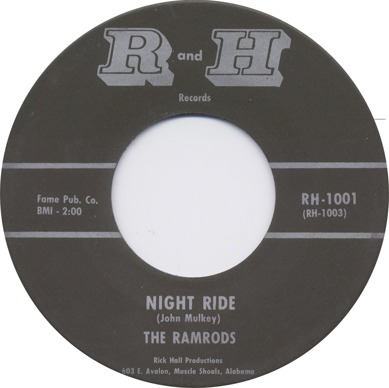 In 1963, the Ramrods went into Baldwin Recording Studio in Woodlawn, which they did quite often after shows to record various tunes. On this trip, they recorded two original songs, written by Johnny Mulkey, “Night Ride” and “Moonlight Surf,” both surf sounding instrumentals. They took the tracks to Rick Hall, who ran Fame Recording Studio in Muscle Shoals. He liked them and agreed to press the songs. The band had thought that their songs would be on the Fame label, which, although still a local label, was fairly well known. However, Rick was starting a new label, R and H, and released the Ramrods on it. Theirs was the first record on this label, the label number being RH-1001. This was an obvious disappointment to the band not to have been on Fame, but Hall had done a good job of mixing and producing the record and the band was happy with the result.